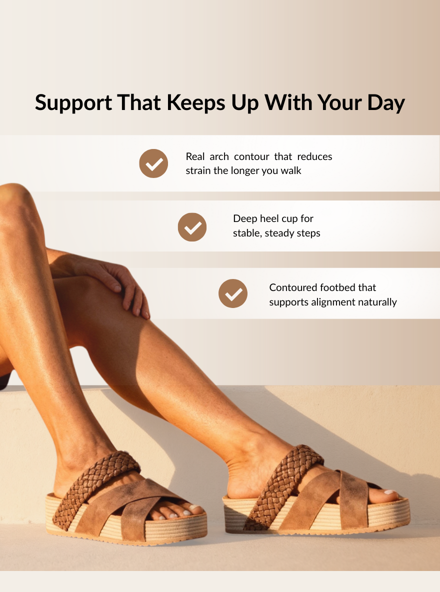 Gentle built-in support that helps your feet stay aligned and comfortable from morning to night.
